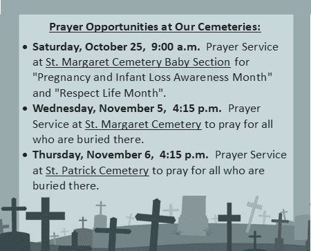 CEMETERY NEWS: Please contact the Cemetery Office to purchase burial or columbarium niche space at (920) 725-8381 x7106